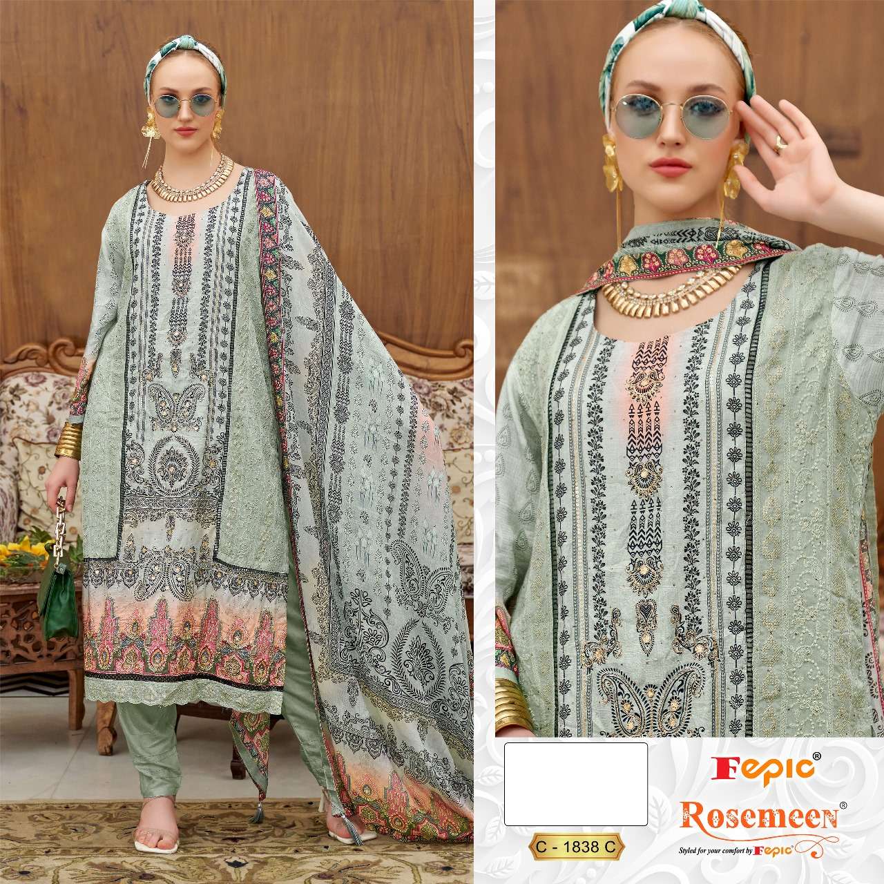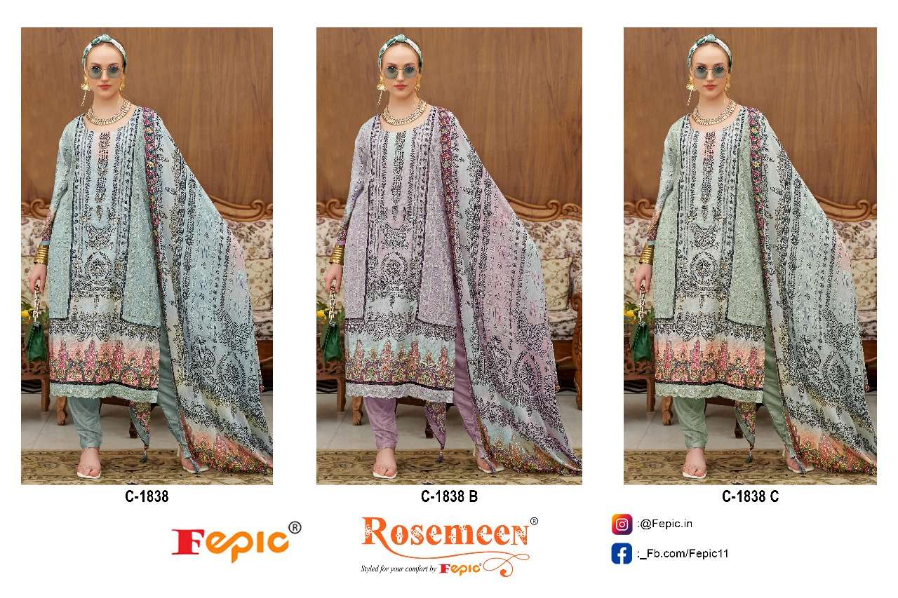 | Catalog | FEPIC rosemeen d.no.1838 primium muslin embrodery suit set online dealer surat |